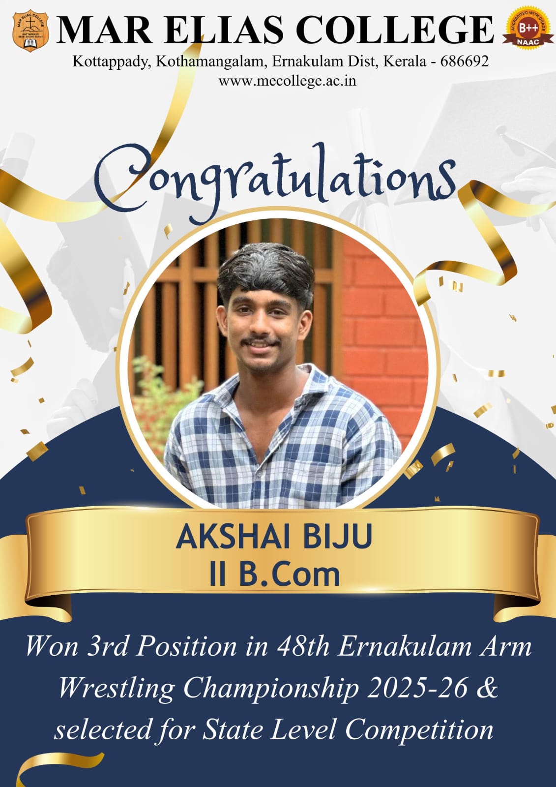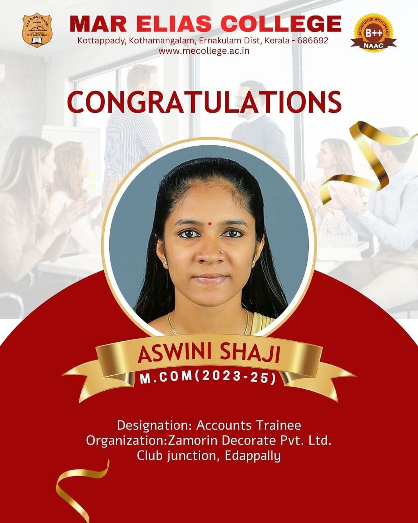 I am Vaishnavi E. P., an alumna of Mar Elias College, Kottappady, having completed my Bachelor of Commerce degree as part of the 2021–2024 batch. I am currently pursuing a Master of Business Administration at Amity Global Business School, Amity University, Bangalore. As I reflect upon my academic journey, I am deeply grateful to Mar Elias College for laying a strong and lasting foundation for both my personal and professional development.