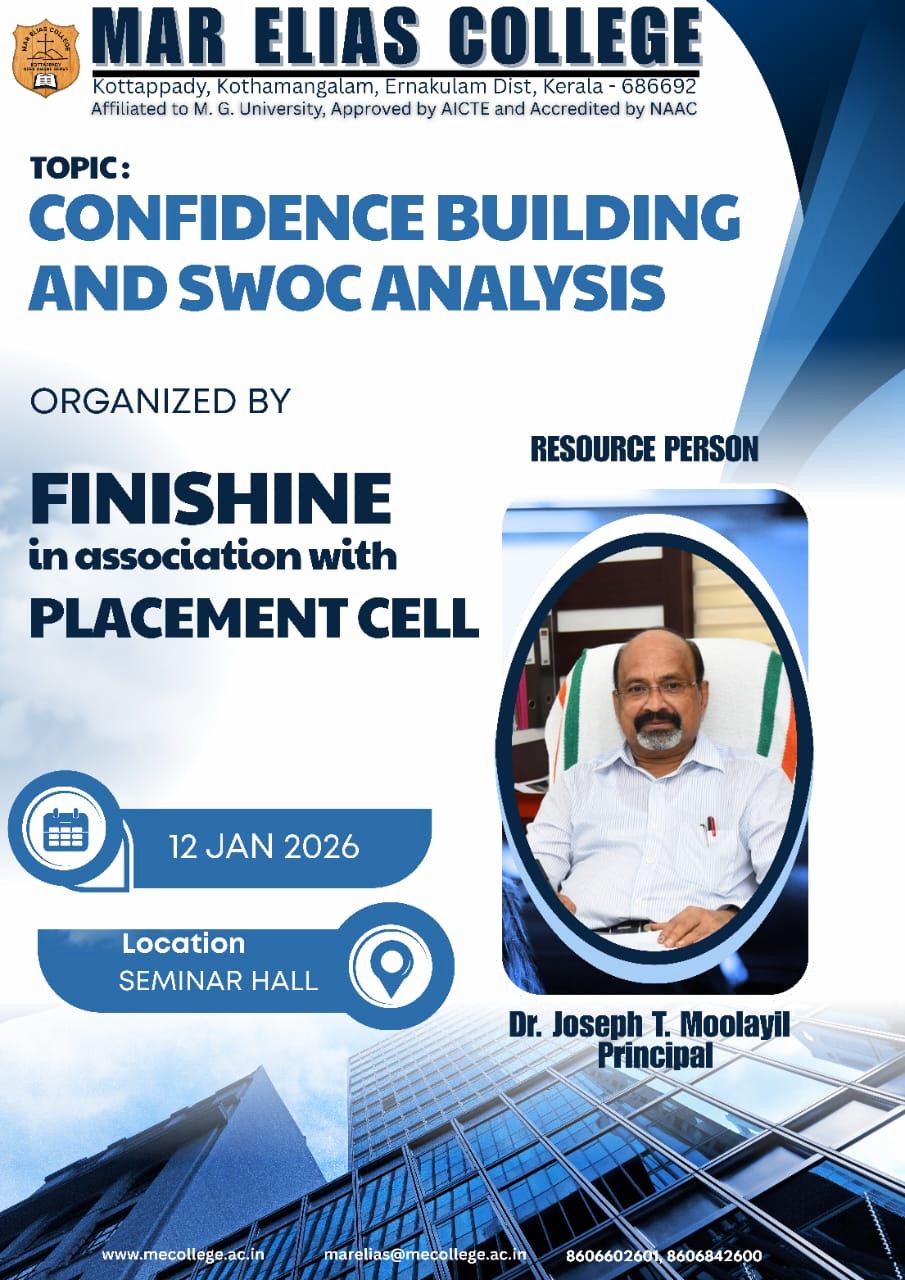 Vew DetailsAs envisaged in the college vision, Mar Elias College, Kottappady has designed the Finishing School programme – FINISHINE,for the holistic development of students and to bridge the gap between the campus and corporate field by exposing to a dynamic work environment.