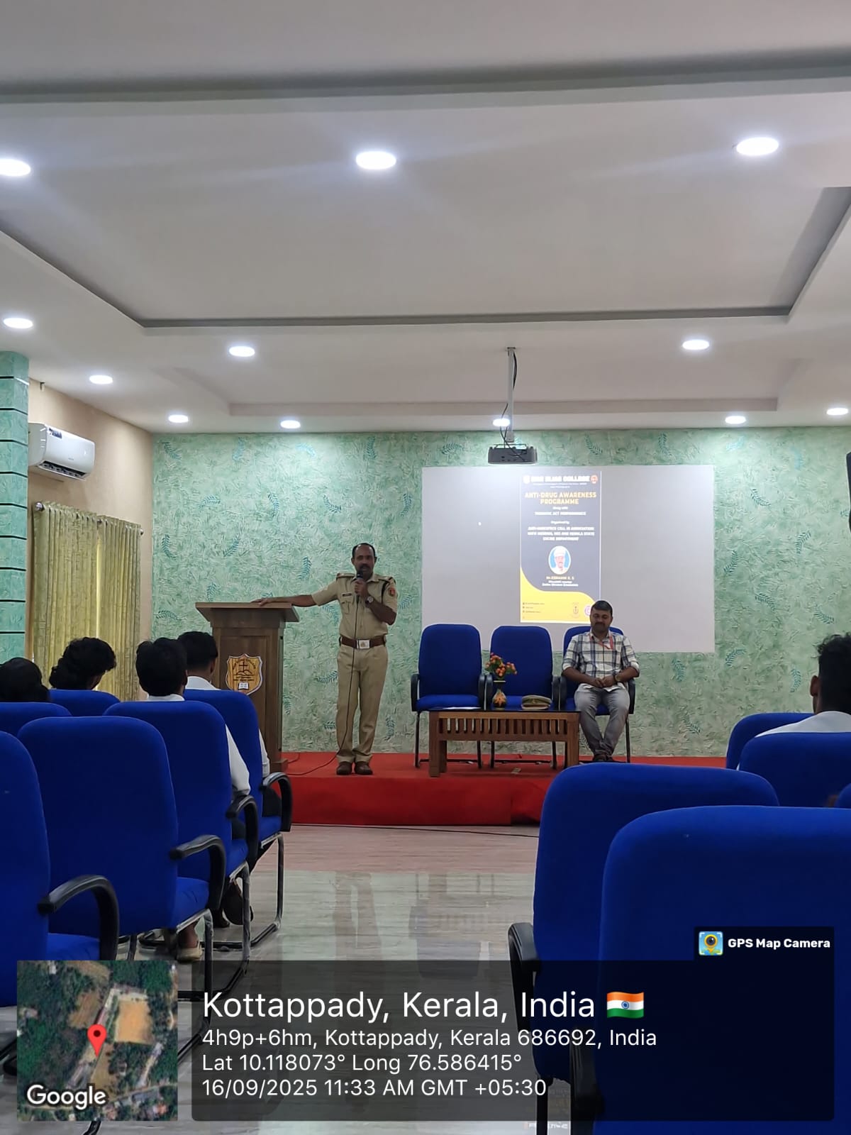 Mar Elias College, Kottappady, Department of Social Work in association with the Anti-Narcotic Cell organized an Anti-Drug Awareness Programme on 16th October, 2025. The main objective of the programme was to create awareness among students about the harmful effects of drug abuse and to promote a drug-free campus.