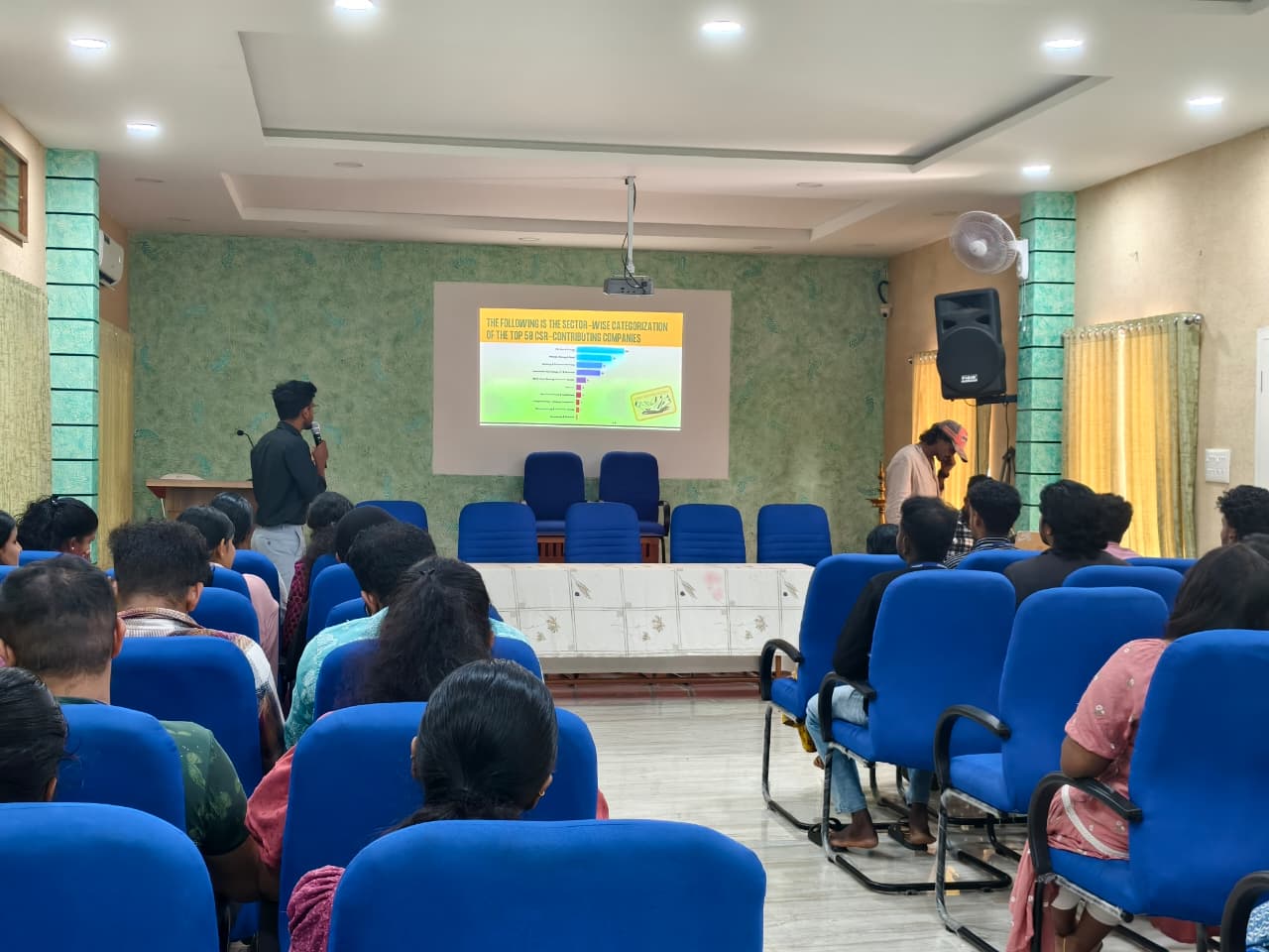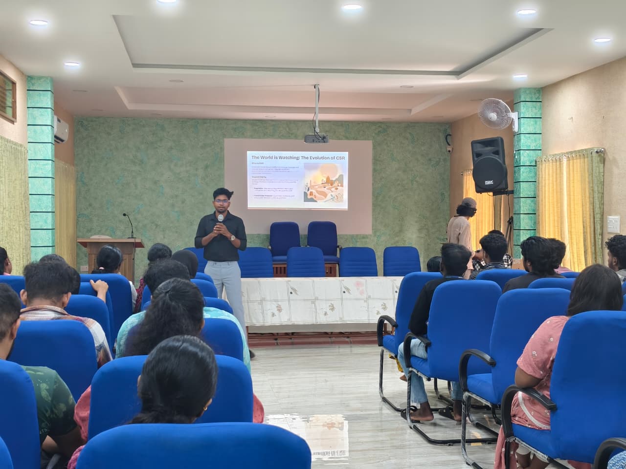 The awareness session was conducted by Mr. Gerald Martin, Founder and CEO Nitronurture Foundation. He delivered an informative and interactive session on insights and impact of CSR. His talk effectively encouraged the students to stay vigilant and engage in CSR activities in future.
