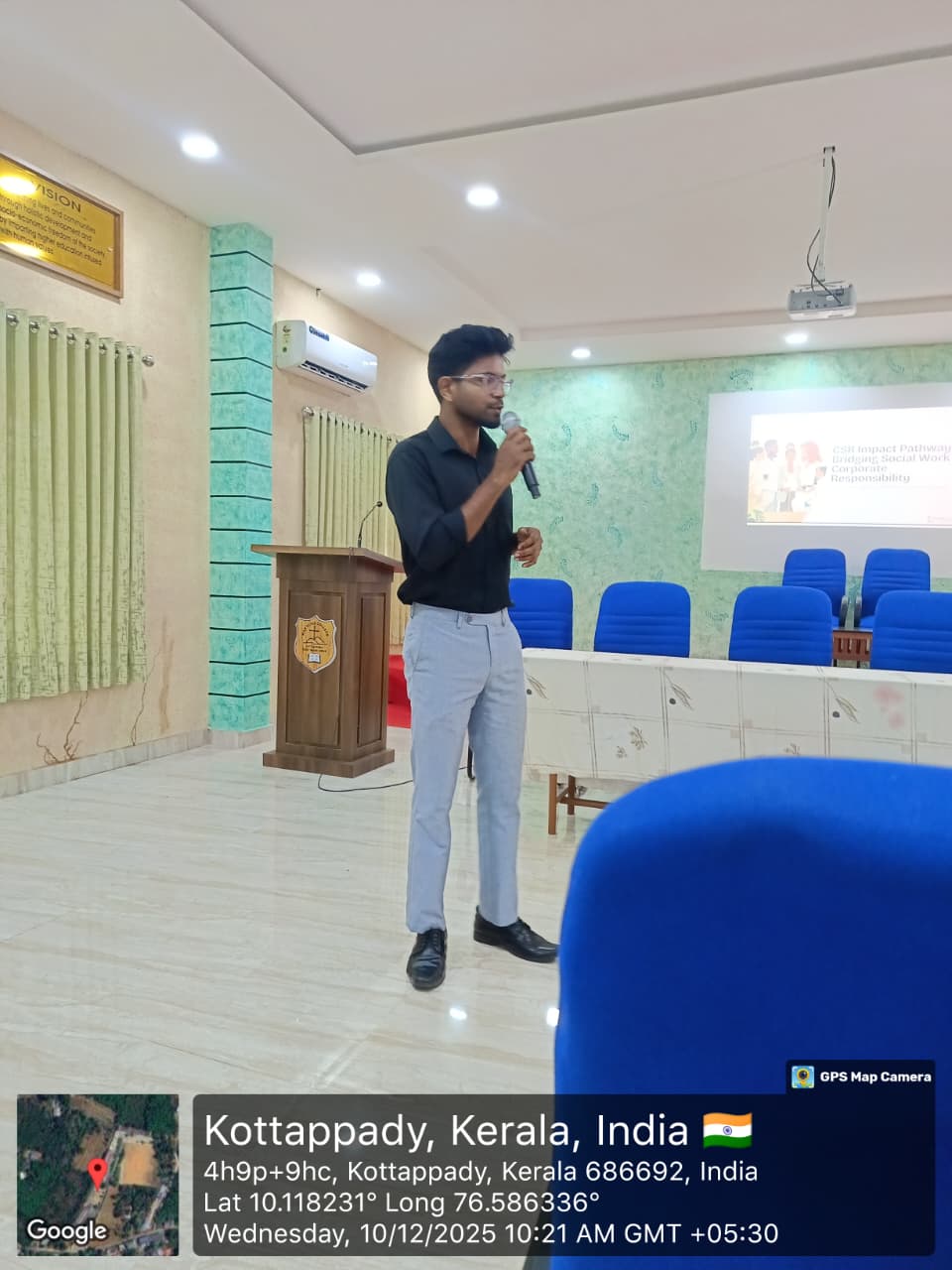 Mar Elias College, Kottappady, Department of Social Work in collaboration with the Nitronurture Foundation organized a Programme on CSR Impact pathways on 10th December, 2025. The main objective of the programme was to create awareness among students about the clarity on how CSR connects purpose with professional growth and how to contribute real world impact through structured learning and involvement