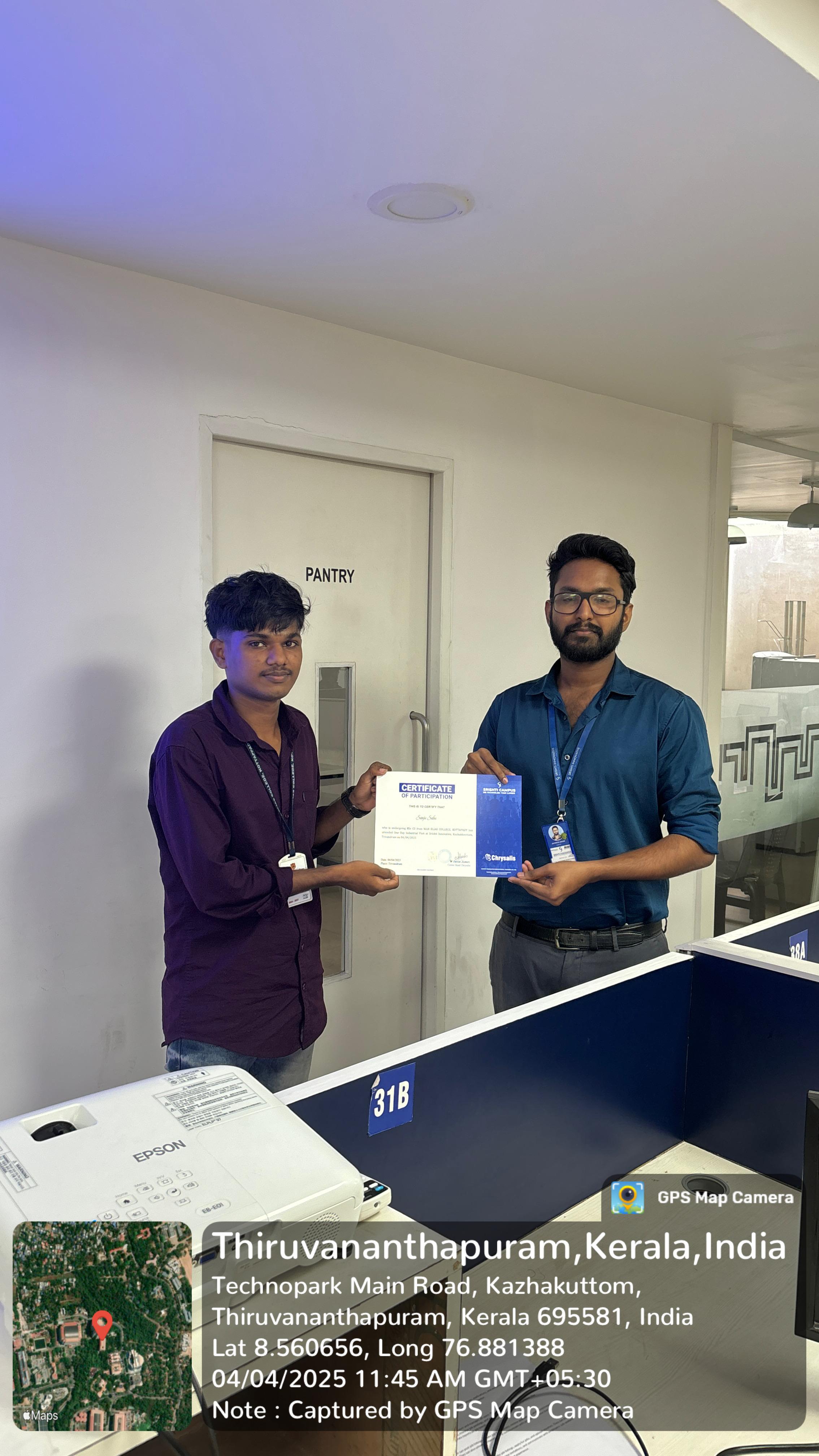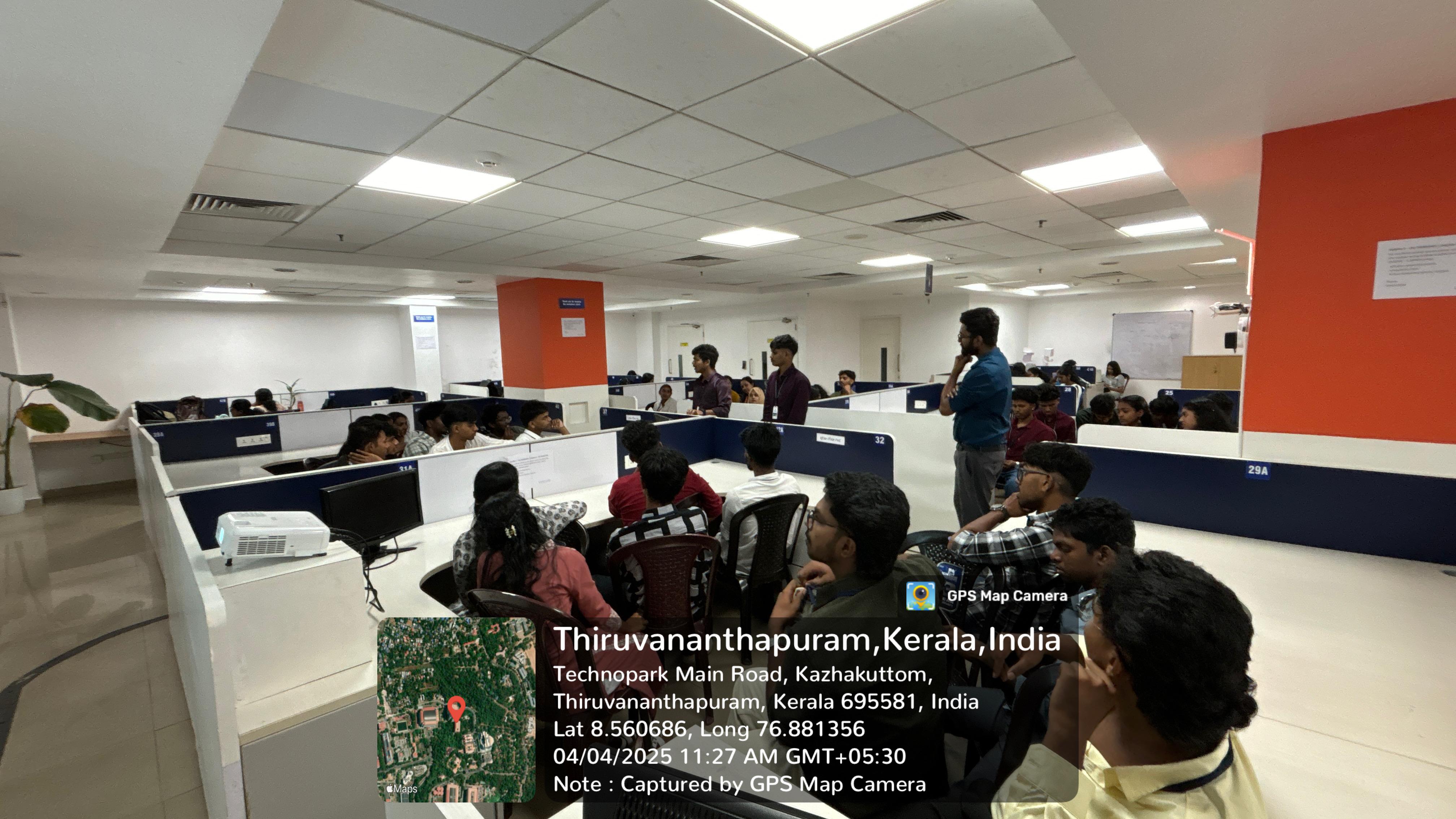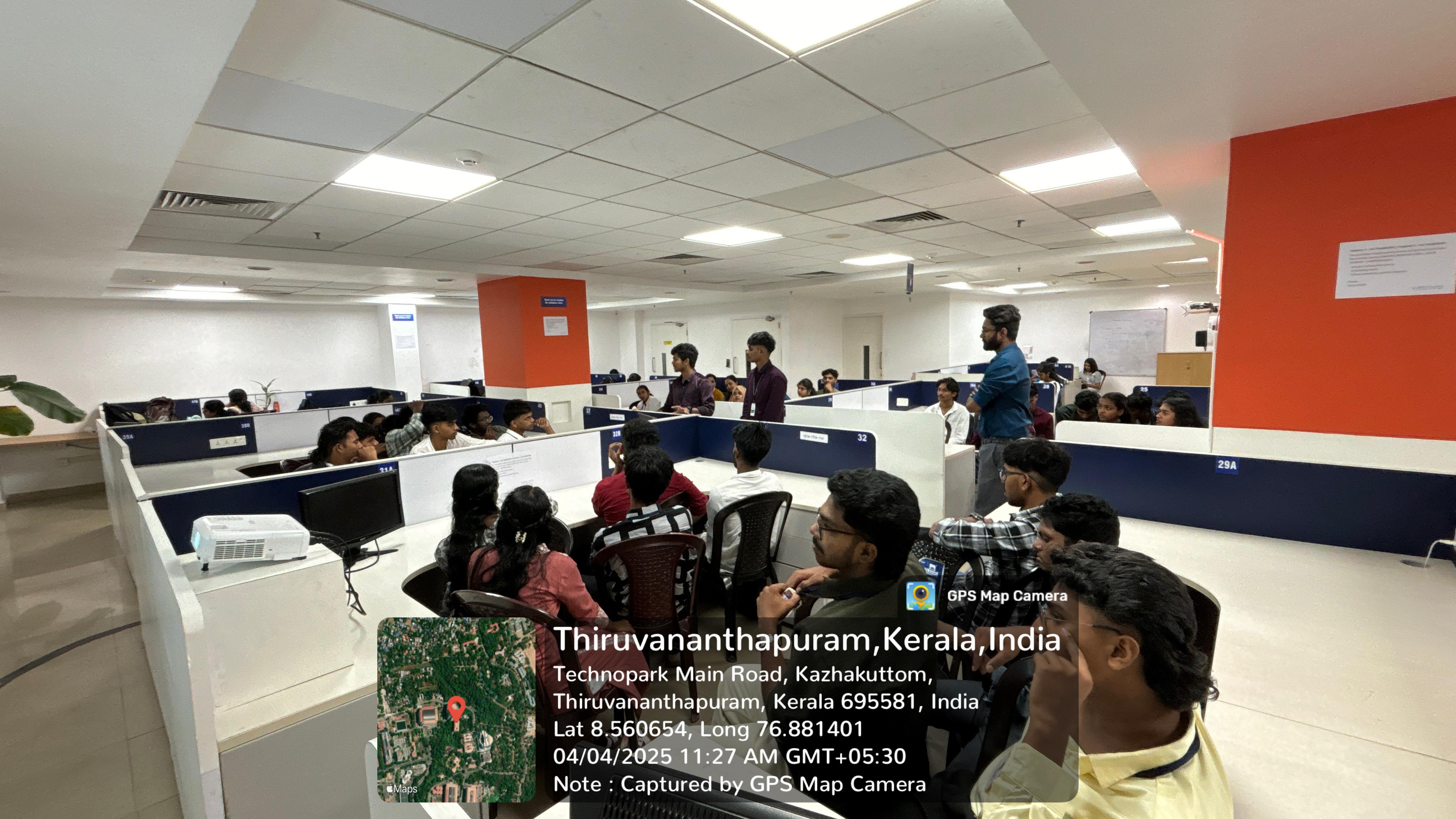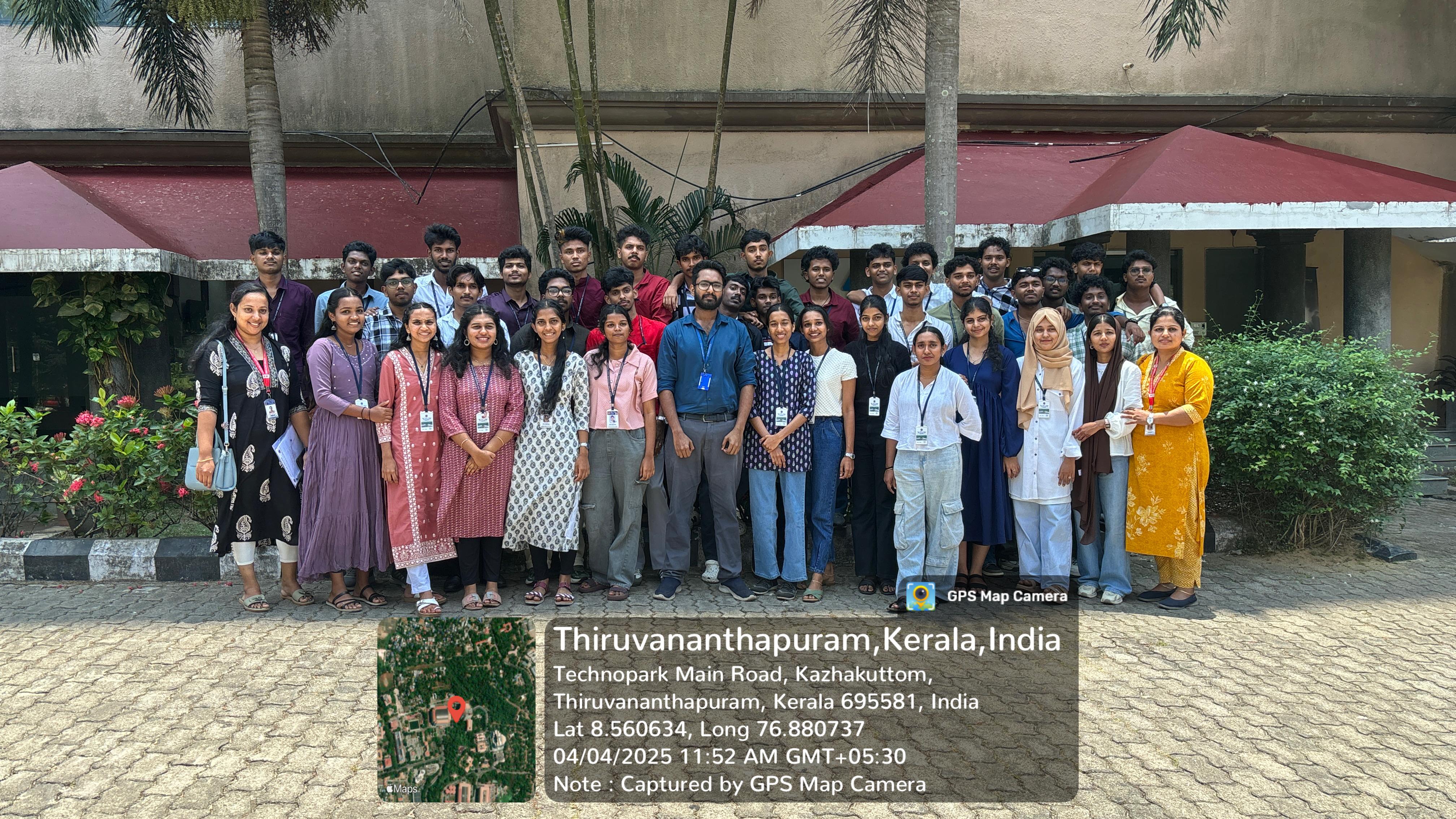 As part of our academic curriculum, 37 students of 1st year (2nd semester) BCA & B.Sc. Computer Science and two faculties of the Department Computer Science and Applications undertook an Industrial Visit (IV) to Srishti Innovative, Technopark, Thiruvananthapuram, from April 3 to April 5, 2025. The primary objective of this visit was to gain practical insights into software developing and related technologies. Additionally, after the visit, we travelled to Thiruvananthapuram for leisure, exploring historical and cultural landmarks.