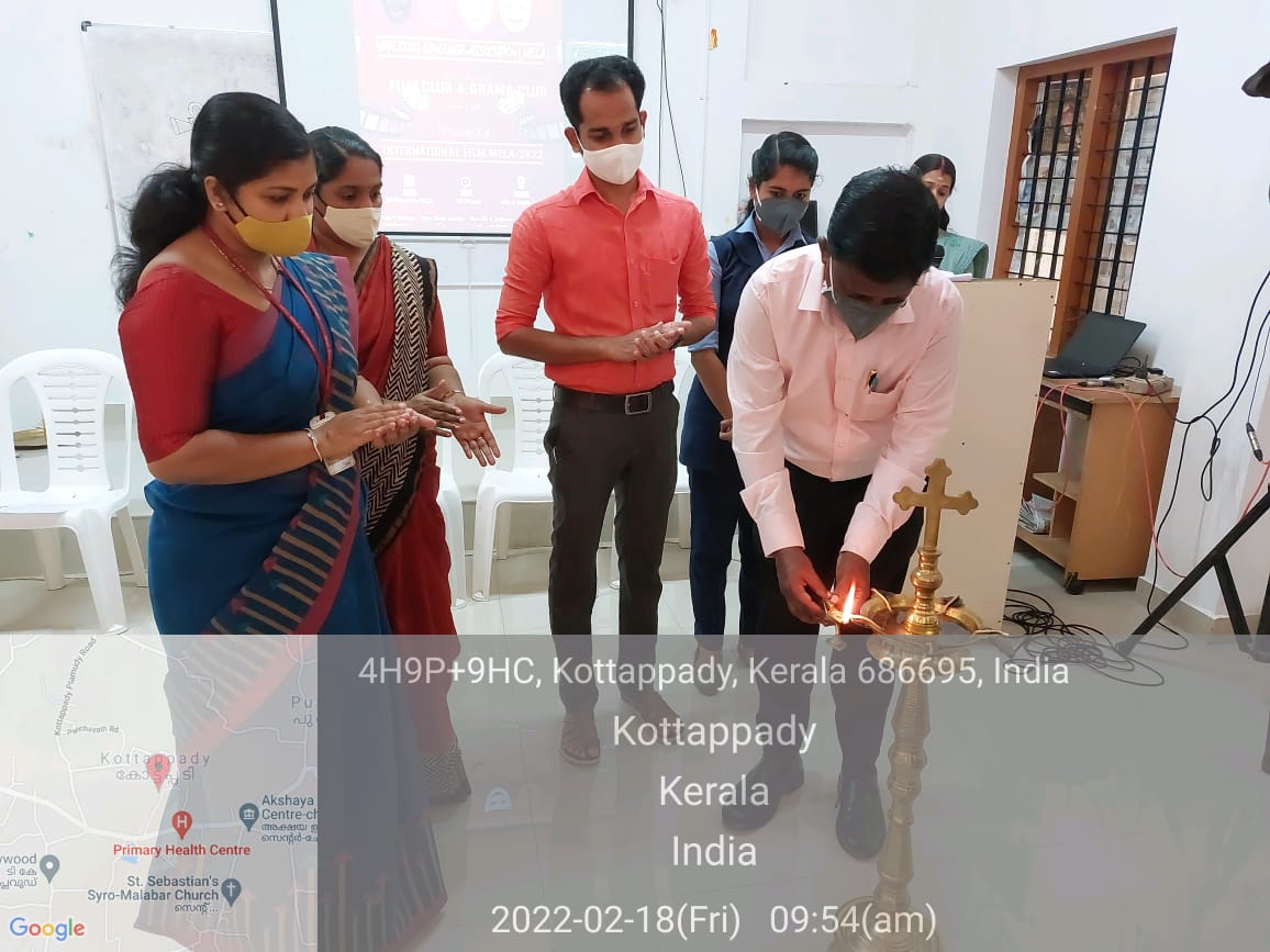 Film Club in association with Mar Elias Language Association (MELA) and Drama Club under IQAC organized one day International Film festival on 18 February 2022, from 9.30 am to 3.30 pm in MELA Studio Complex. The programme was presided by Ms. TintuScaria, HOD, Dept. of English. A warm welcome was extended to all dignitaries by Kum. Sona Sojan Jt. Secretary, MELA. The programme was inaugurated by the principal Dr. P.K. Sudarsanan. He talked about different types of films and the efforts behind the direction of films. MELA President Kum. Fathima Farhana proposed the Vote of thanks. Six films with different panorama were screened after the inaugural session. They were” The Pursuit of Happiness”, “Kavi”, “The Kid”, “Kaakka”, “Land of Mine”, “Kiwi”. Almost 115 students attended the International Film festival. The whole programme was true blend of information and entertainment.
