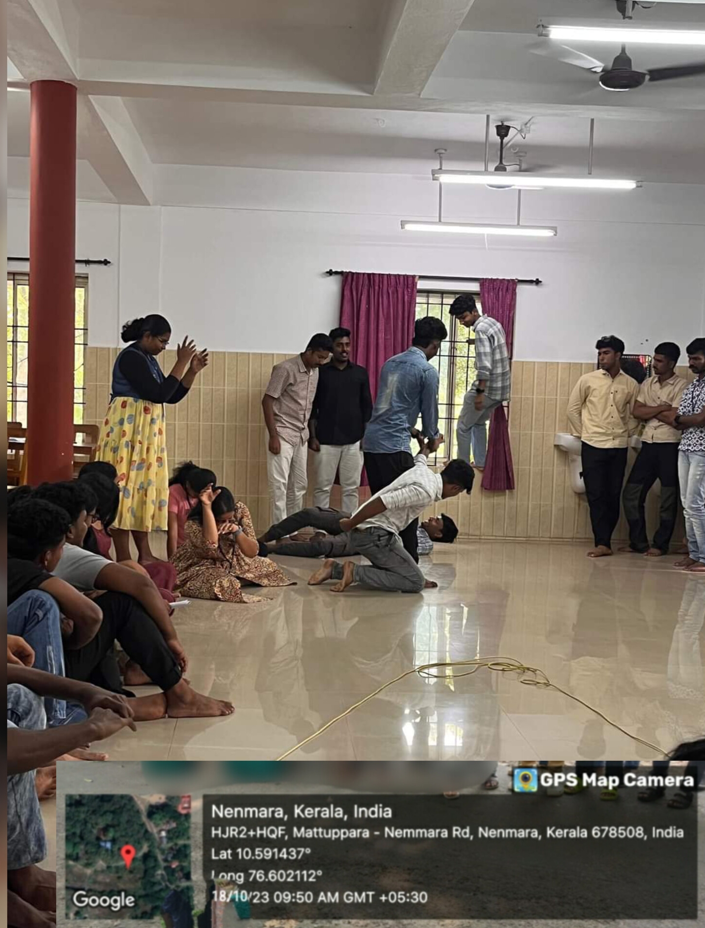 One day Theatre Workshop was organized by the Department of Social Work. The workshop focused on the skill development of the students. The workshop was organized as a part of the Rural Campfrom 1.00 pm to 4.00 pm. The workshop was chaired by Mr.Suma (Artist), Mr.Jishnu Hareendra Varma, Film Director inaugurated the session and Ms Soumya Mathew the Head of the Department gave the inaugural speech. The technical session includes lectures on street play. A practical session was also conducted among the students under the guidance of the faculties.Trainees practiced various street play techniques. The mistakes and shortcomings in conducting street play were discussed by the resource person. Overall it was a good learning experience for the students. Ms.Bijila O S concluded the workshop with a vote of thanks.