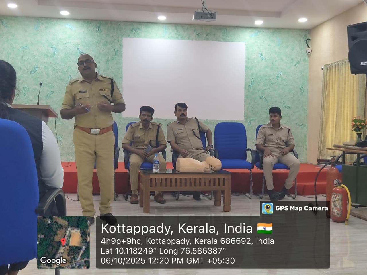 The workshop was led by experts from the Fire and Rescue Station, Kothamangalam — Mr. P. M. Rasheed, Senior Fire and Rescue Officer, and Mr. Satheesh Jose, Assistant Station Officer. They shared valuable insights and practical knowledge on disaster response strategies, safety protocols, and the importance of immediate and coordinated action during emergencies. The session also included live demonstrations of rescue operations and the use of firefighting equipment, which provided participants with hands-on learning experiences.