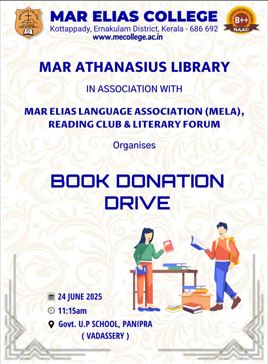 Mar Athanasius Library in association with Mar Elias Language Association (MELA), Reading Club & Literary Forum organises Book Donation Drive at Govt. U P School Panipra (Vadassery) on 24/06/2025