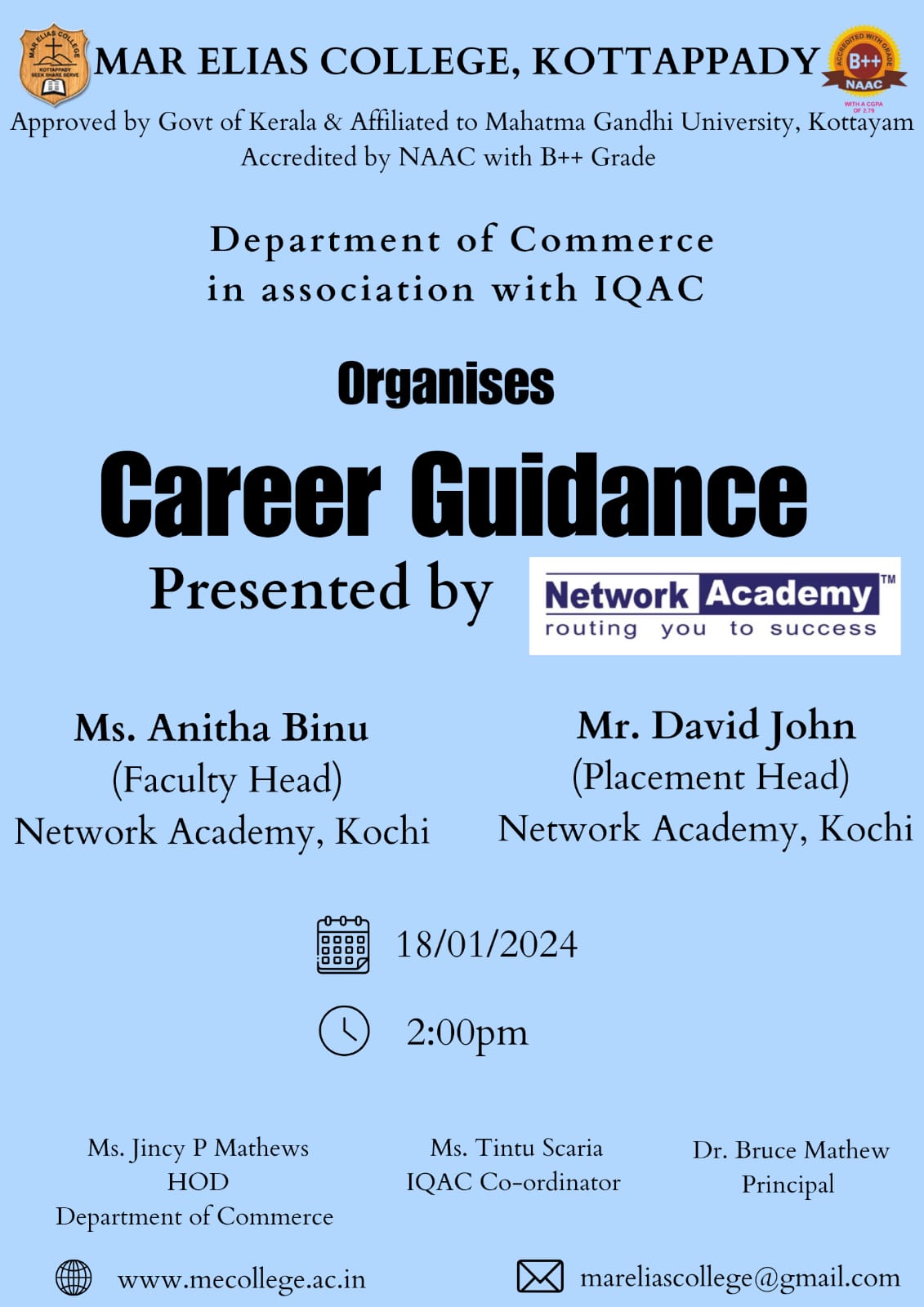 Department of Commerce in association with IQAC organises Career Guidance presented by Network Academy.