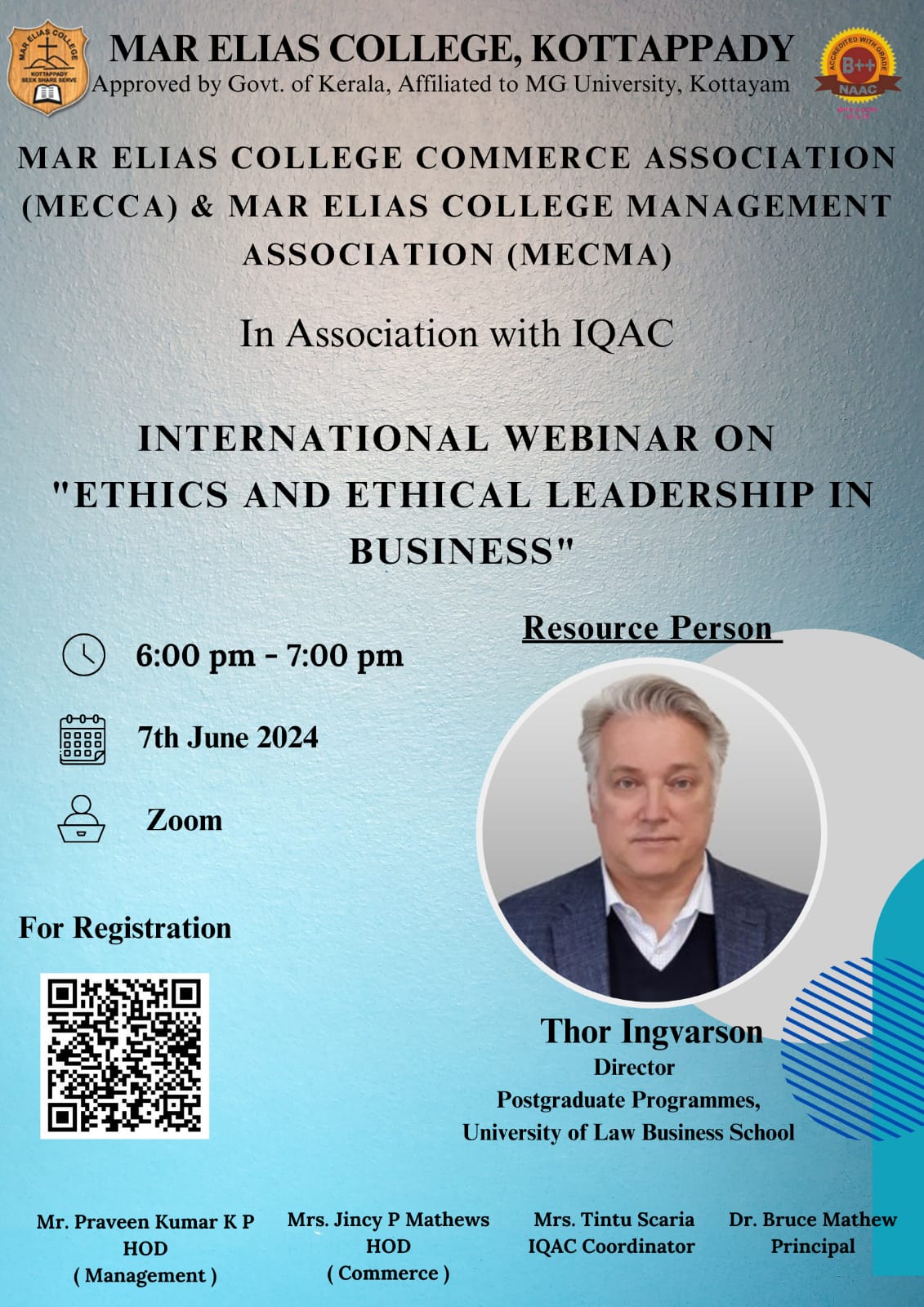 International webinar on "Ethics and Ethical Leadership in Business" on 07/06/2024.