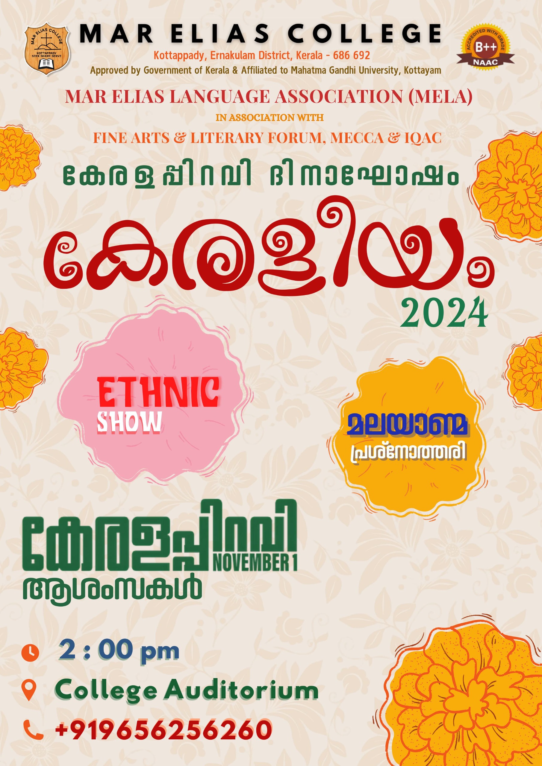 Mar Elias Language Association (MELA) in association with Fine Arts & Literary Forum ,MECCA & IQAC celebrates KEERALEEYAM -2024 on 01/11/2024.