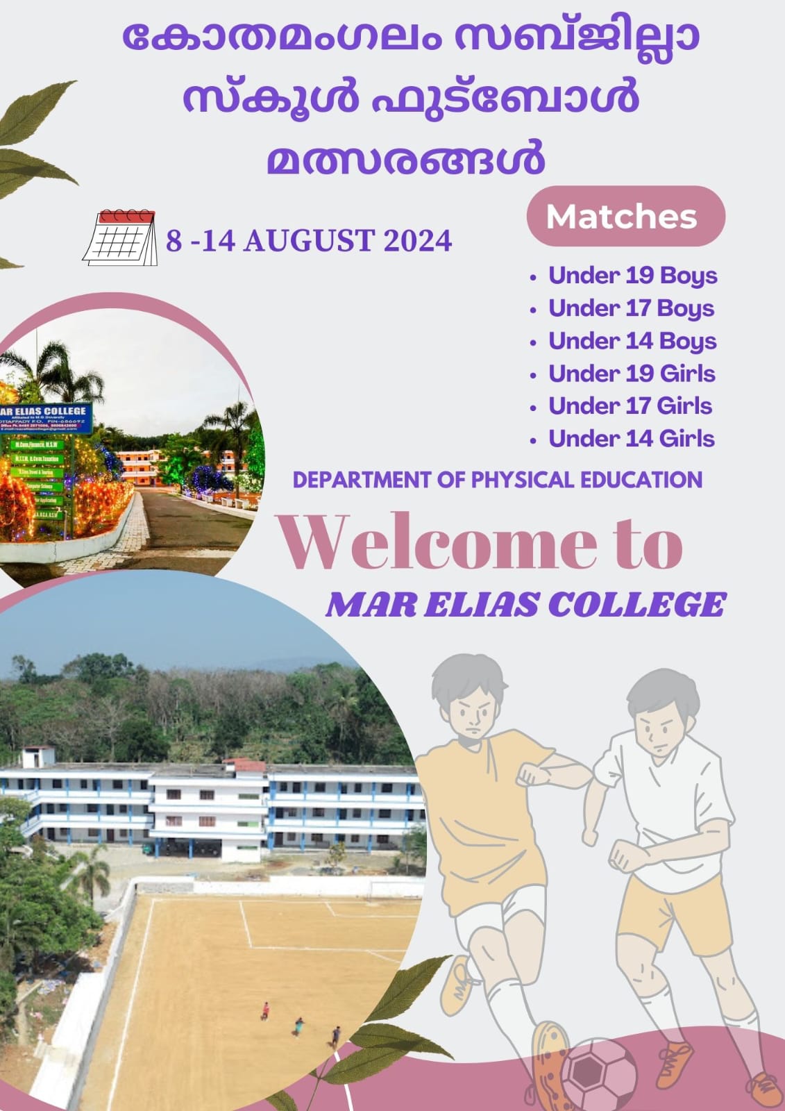 Kothamangalam Sub District School Football Competitions at MarElias College from 8 - 14 August 2024.