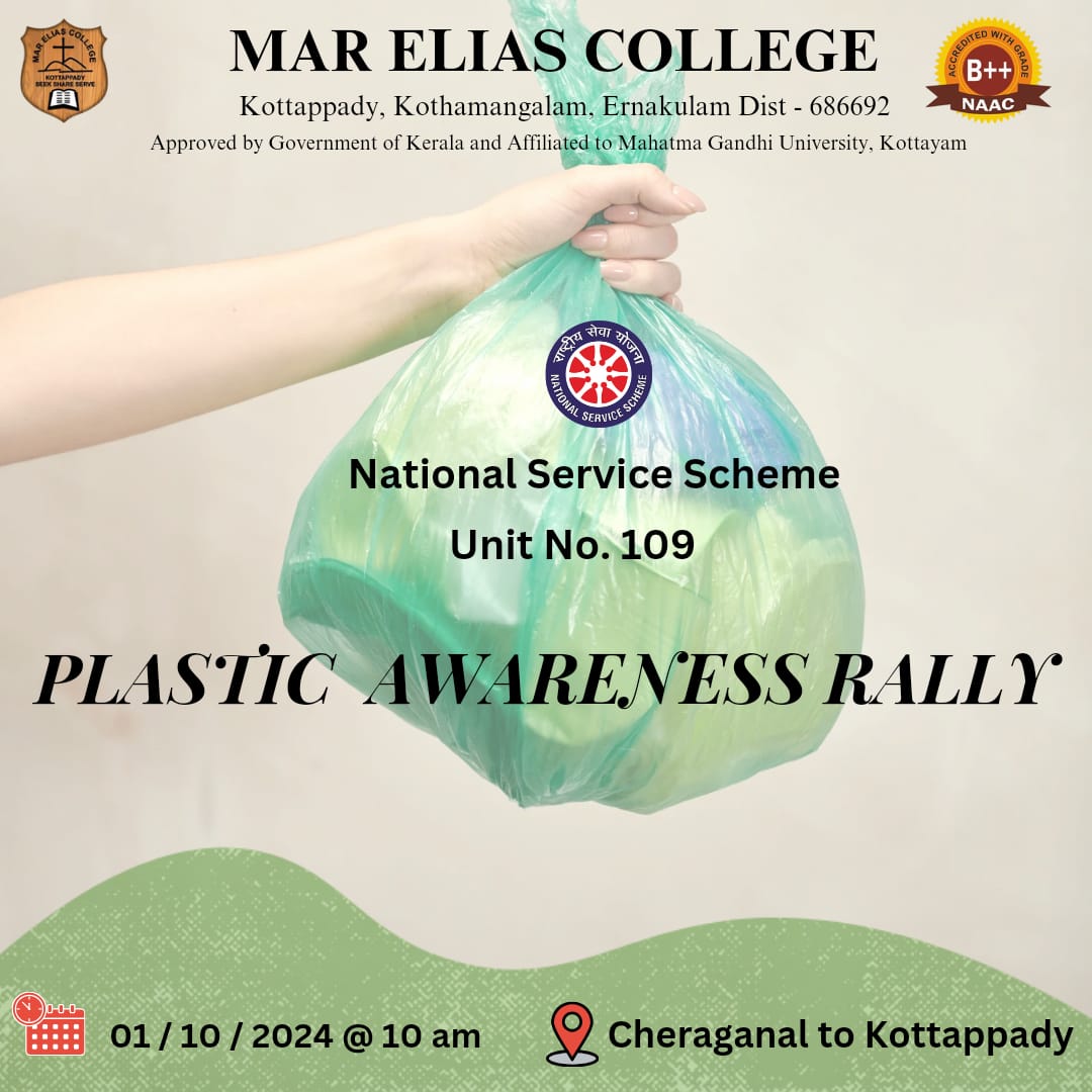 NSS organises Plastic Awareness Rally on 01/10/2024 at 10.00 am.