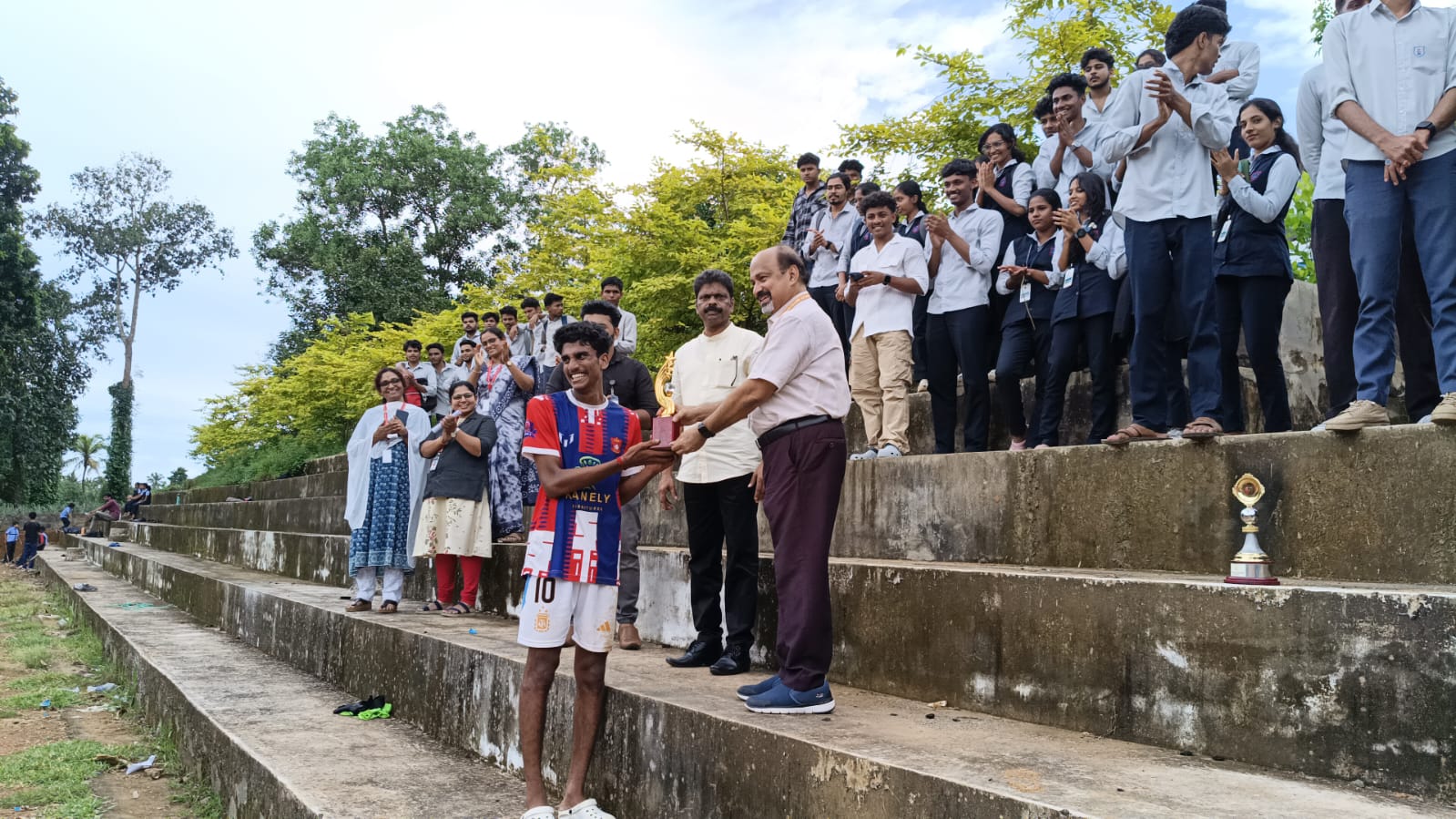 The championship trophy was awarded to the winning team by Principal Dr. Joseph T. Moolayil.