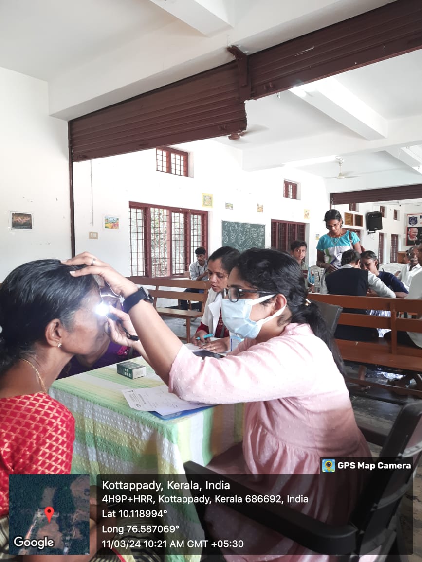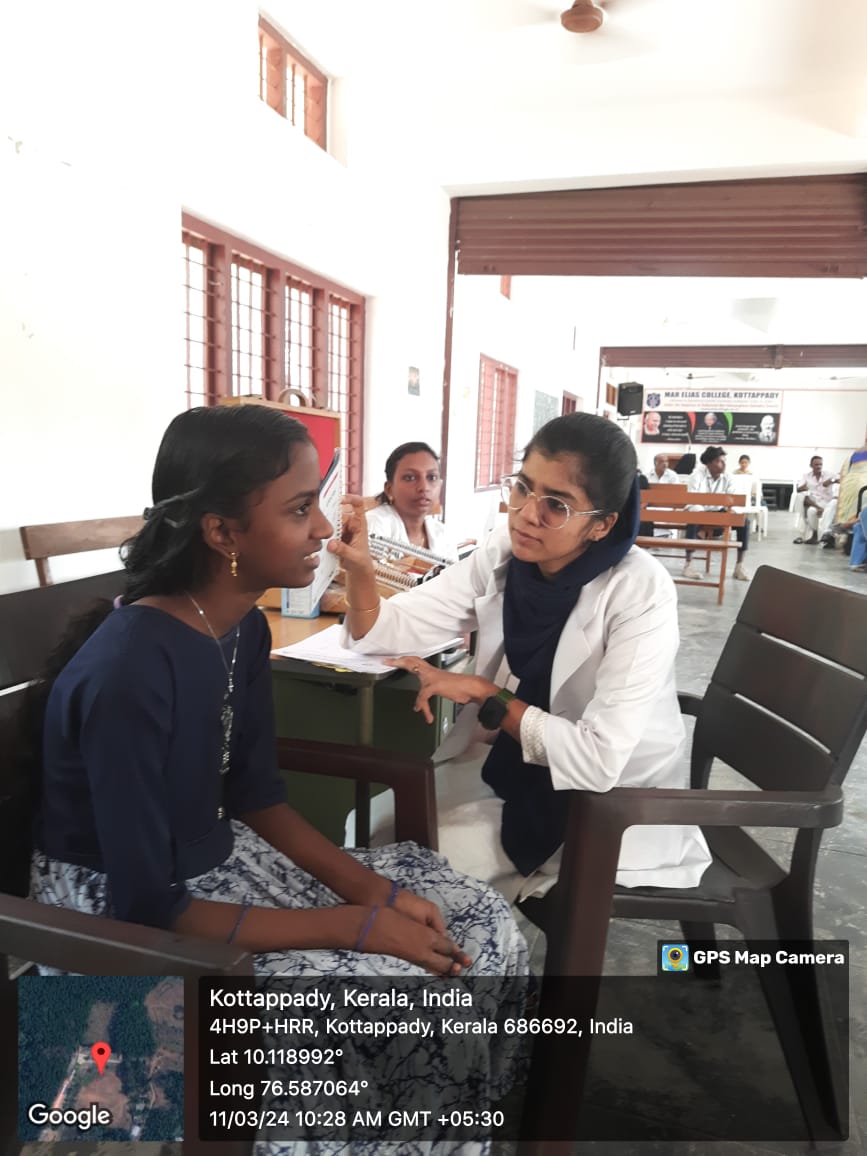 At 9:00 am, a team from TVJ Eye Hospital, Thankalam, comprising one ophthalmologist, one manager, and two assistants, arrived with the necessary eye testing equipment, marking the commencement of the camp. The team's presence ensured that attendees received professional care and attention throughout the event.The Free Eye Camp offered a wide range of facilities to address various eye health concerns, including the detection of nerve damage, checking eye pressure, correcting vision disorders, conducting cataract diagnostic tests, performing visual range tests, and expert tests for diabetic patients. Additionally, free medicines (limited) were distributed to attendees in need of medication.The camp attracted participants from neighboring villages of Kottappady, as well as students and staff of Mar Elias College, reflecting the community's interest and awareness in eye health.
