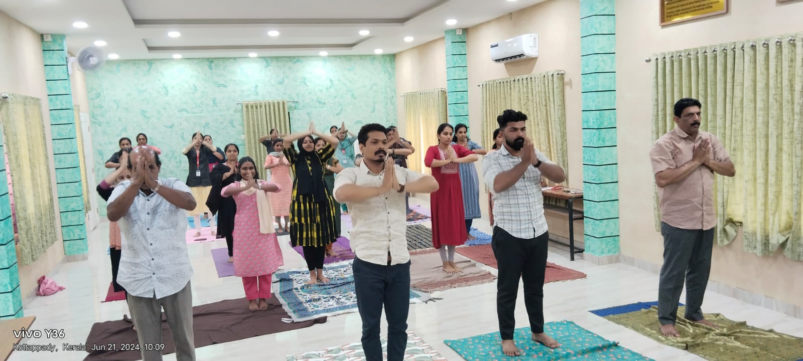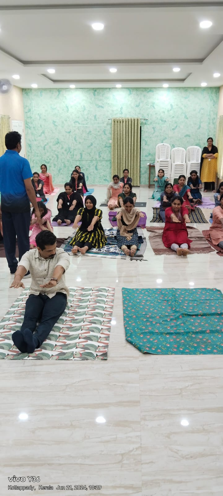 Mar Elias College, Kottappady, celebrated International Yoga Day on June 21, 2024, with a series of activities aimed at promoting the benefits of yoga. The event was organized by the NSS Unit No. 109 in collaboration with the Staff Association. The program began at 9:30 am in the college seminar hall, which was filled with enthusiastic participants. The primary focus of the celebration was a Yoga Awareness Class, conducted by Sri. Mohanan S., the head of the Physical Education Department at Mar Elias College. The event commenced with a welcome address, highlighting the importance of International Yoga Day and the significance of incorporating yoga into daily routines for overall well-being by Mrs. Jincy P Mathews, Vice Principal. Sri. Mohanan S. led the main session, focusing on the physical and mental benefits of yoga. He provided an insightful introduction to various yoga postures, breathing techniques, and meditation practices. The interactive session allowed participants to engage in practical exercises, fostering a deeper understanding and appreciation of yoga. The yoga instructor demonstrated several yoga poses and guided participants through a series of exercises designed to improve flexibility, strength, and relaxation. Participants were encouraged to follow along, creating an atmosphere of active participation and learning. The event concluded with closing remarks from the NSS Programme Officer Ms. Vidya V V, expressing gratitude to the participants and the instructor for making the event a success. The importance of continuing yoga practice beyond International Yoga Day was emphasized, encouraging attendees to incorporate yoga into their regular routines. The event successfully raised awareness about the benefits of yoga and provided participants with practical tools to enhance their physical and mental well-being. Mar Elias College looks forward to organizing similar events in the future to promote health and wellness among its community members.
