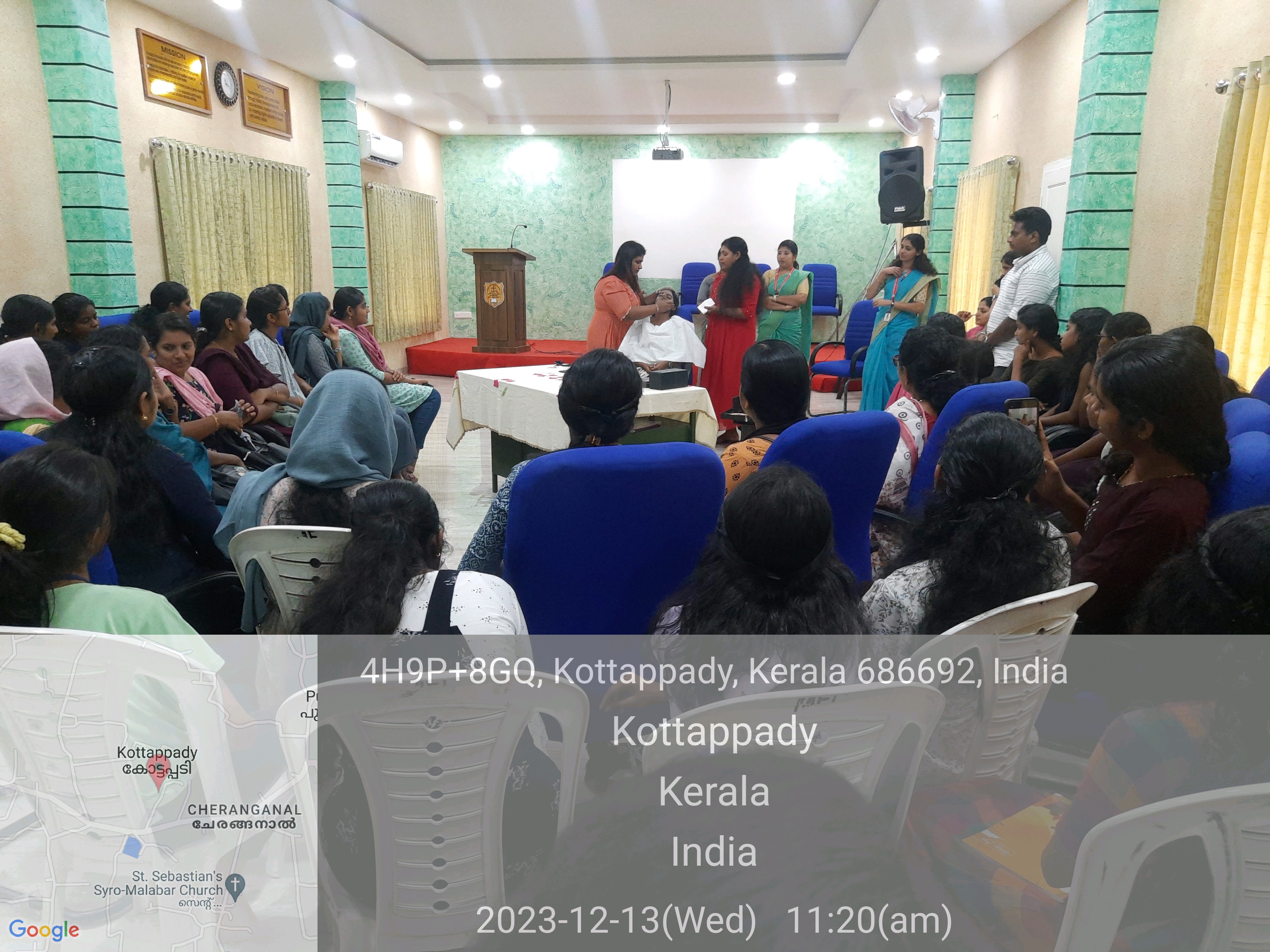 The Makeup Workshop organized at Seminar Hall on 13th December 2023 at 10:00am aimed to provide students with insights into the artistry of makeup application, grooming, and self-expression. Hosted by the Women Empowerment Cell, Department of Tourism Studies, ED Club in association with NSS, Kudumbasree, Kottappady Panchayath and IQACas part of Unarvu Extension Programme, garnered enthusiastic participation from the girl students and Kudumbasree members eager to explore the world of cosmetics and beauty techniques.