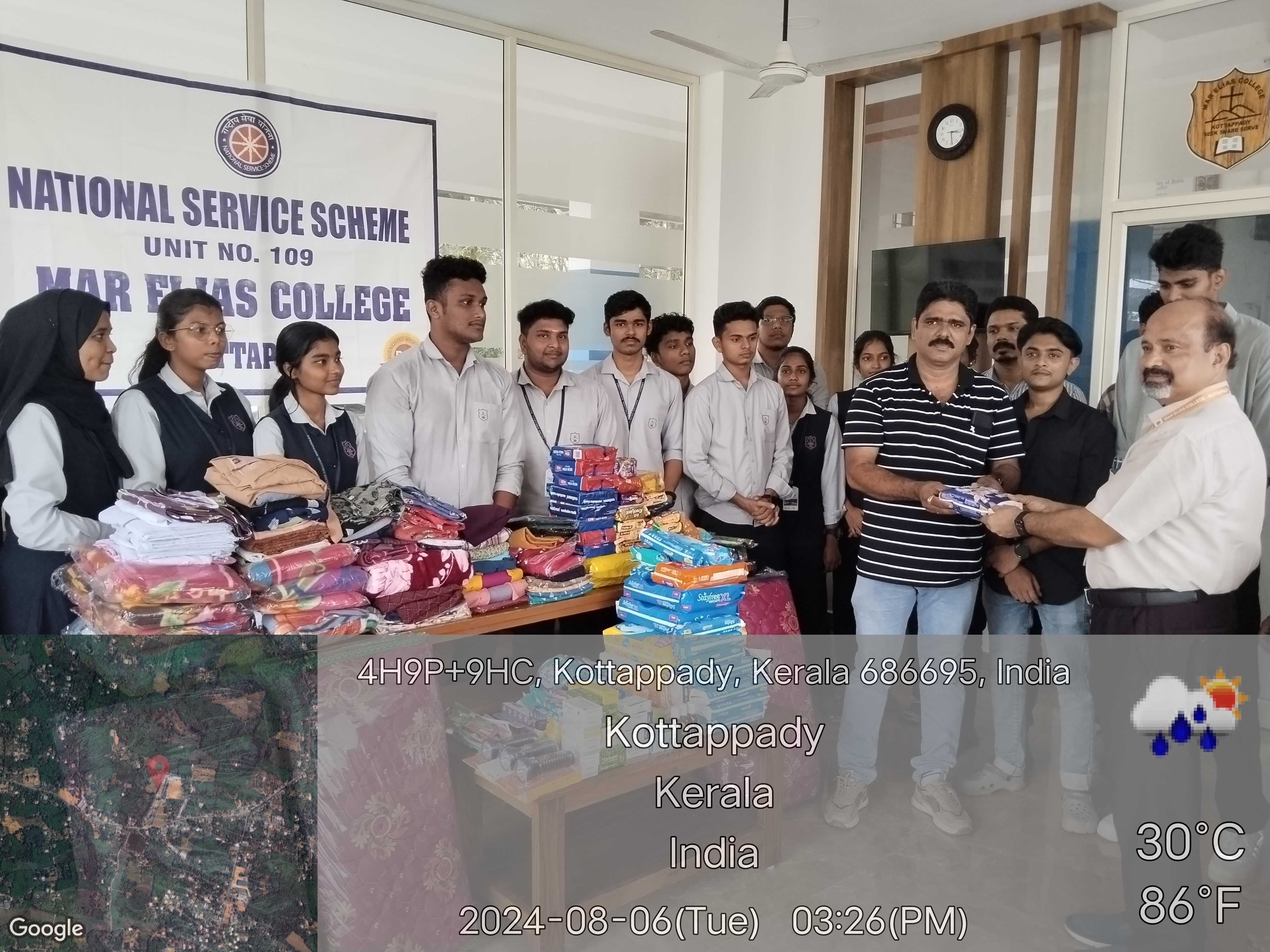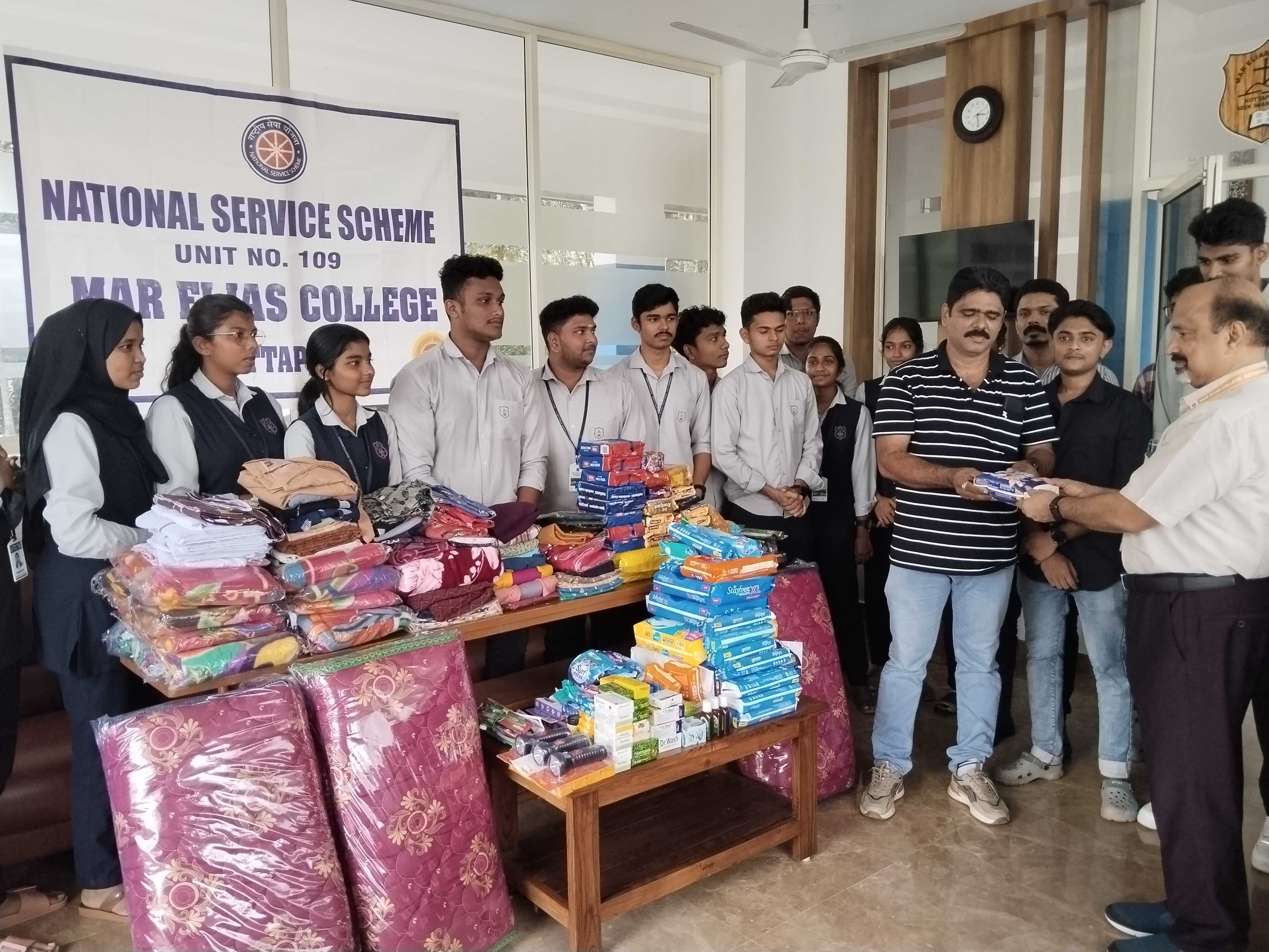 On August 1, 2024, the National Service Scheme (NSS) Unit No. 109 of Mar Elias College, Kottappady, organized a humanitarian collection campaign titled “Wayanadinayi Kaikorkam” to support the flood-affected people of Wayanad district. This campaign aimed to collect essential items such as food, clothing, and medical supplies to provide relief to those impacted by the devastating floods in Wayanad. The NSS unit collaborated with students and faculty members to ensure the success of the initiative.
