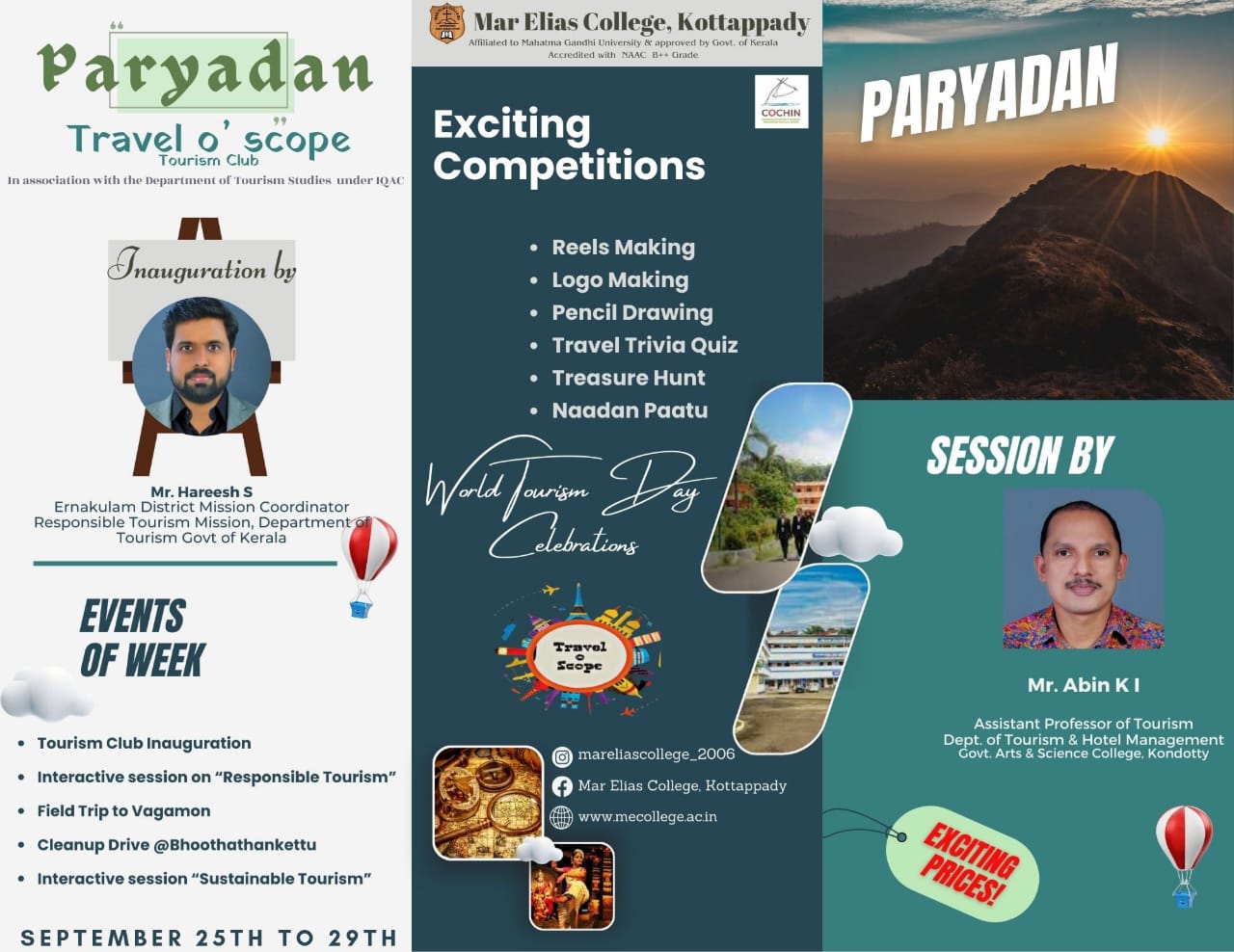 The Club conducts International and National Tourism Day Celebrations every year on September 27th and January 25th with various seminar sessions by eminent persons from tourism and hospitality industry, group discussions and cultural shows related to tourism and competitions like Essay writing, Vlogging, Logo Designing, Quiz, Painting and Poster Designing. Apart from these the club organizes Field visits, camping, industrial visits etc.